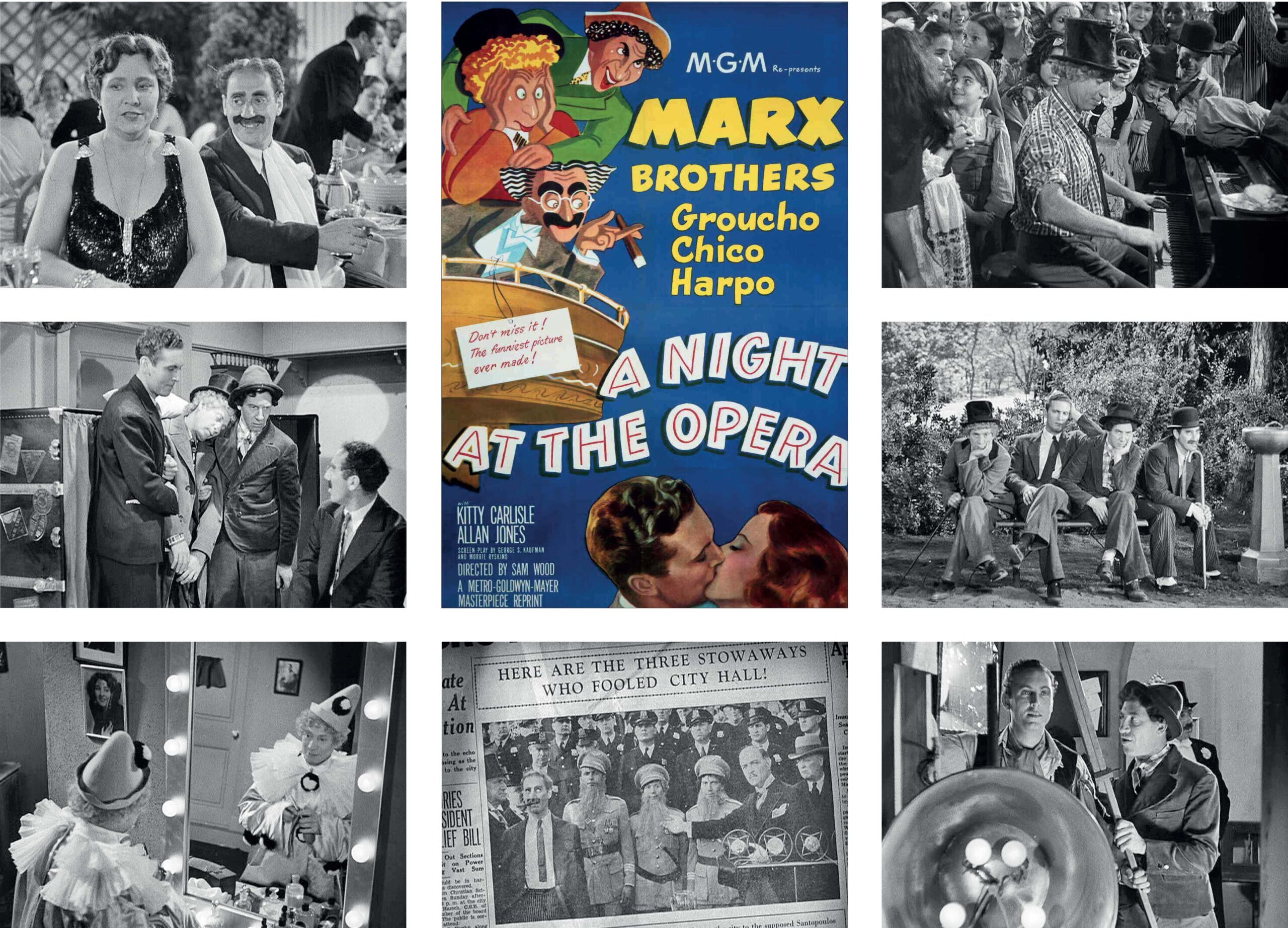A Night at the Opera - Fantastic Scene'it Poster - Free UK delivery. Featuring the main movie poster with x7 scenes from the movie. Exclusive to Hokey Cokey productions.