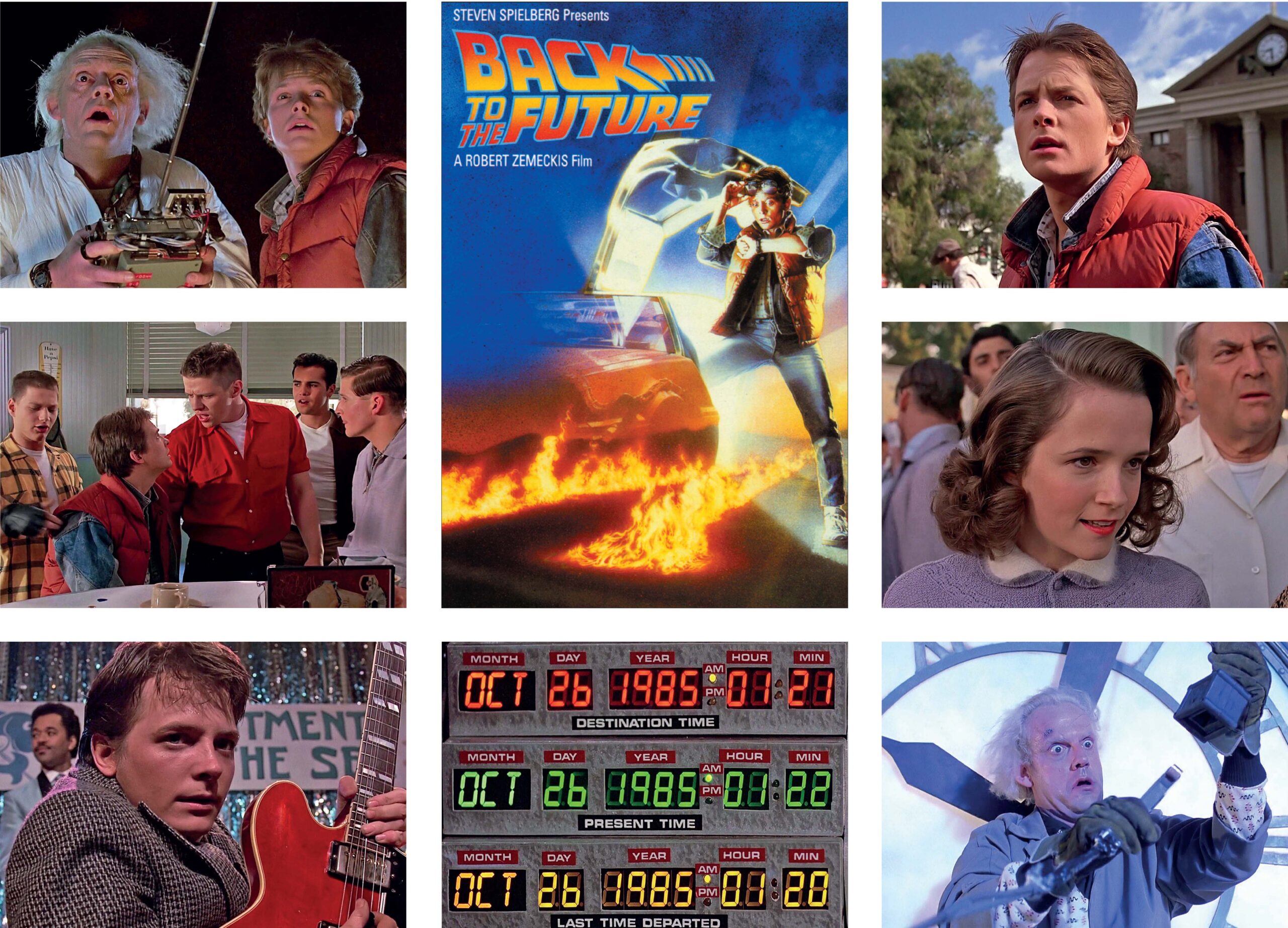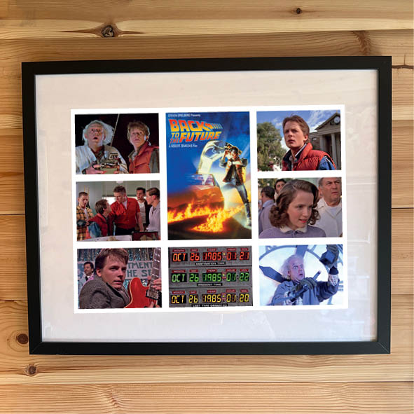 Back to the Future Film - Fantastic Scene'it Poster - Free UK delivery. Featuring the main movie poster with x7 scenes from the movie. Exclusive to Hokey Cokey productions.