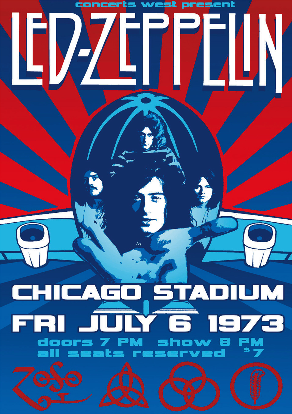 Led Zeppelin - Chicago 1973 - Repro print - FREE UK DELIVERY. Exclusive to Hokey Cokey productions.