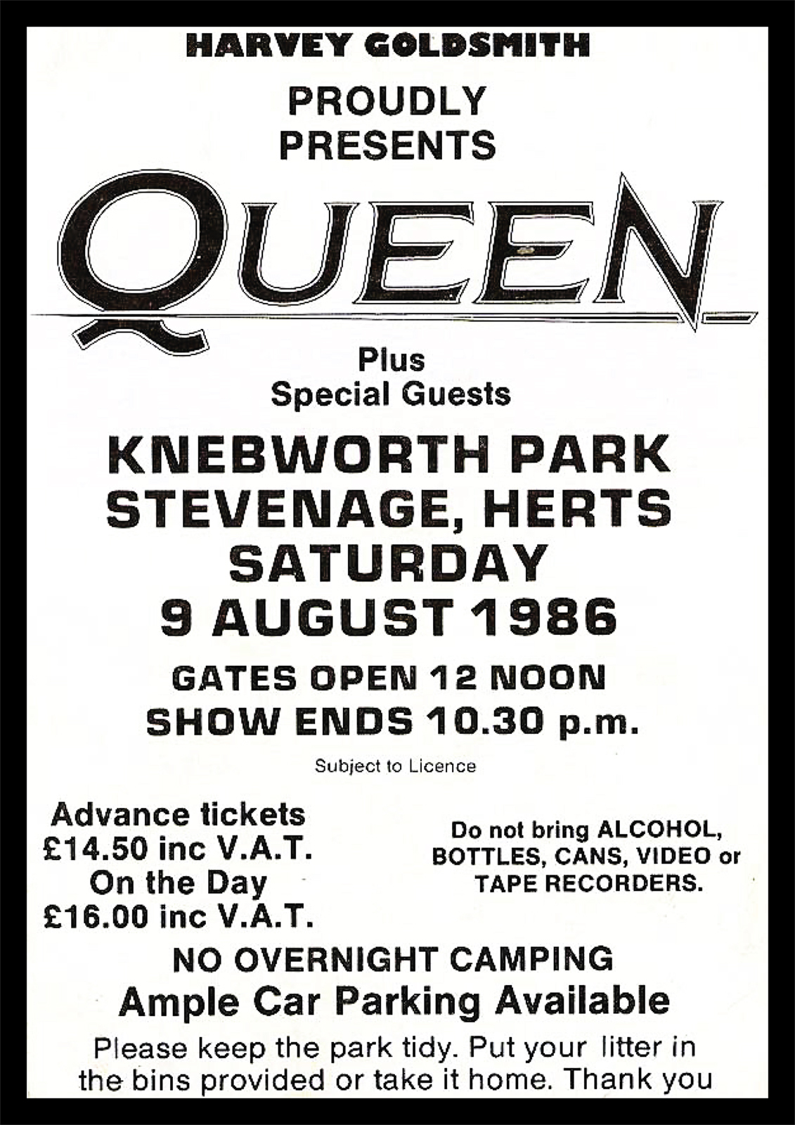 Queen - Knebworth 1986 - Repro print - FREE UK DELIVERY. Exclusive to Hokey Cokey productions.